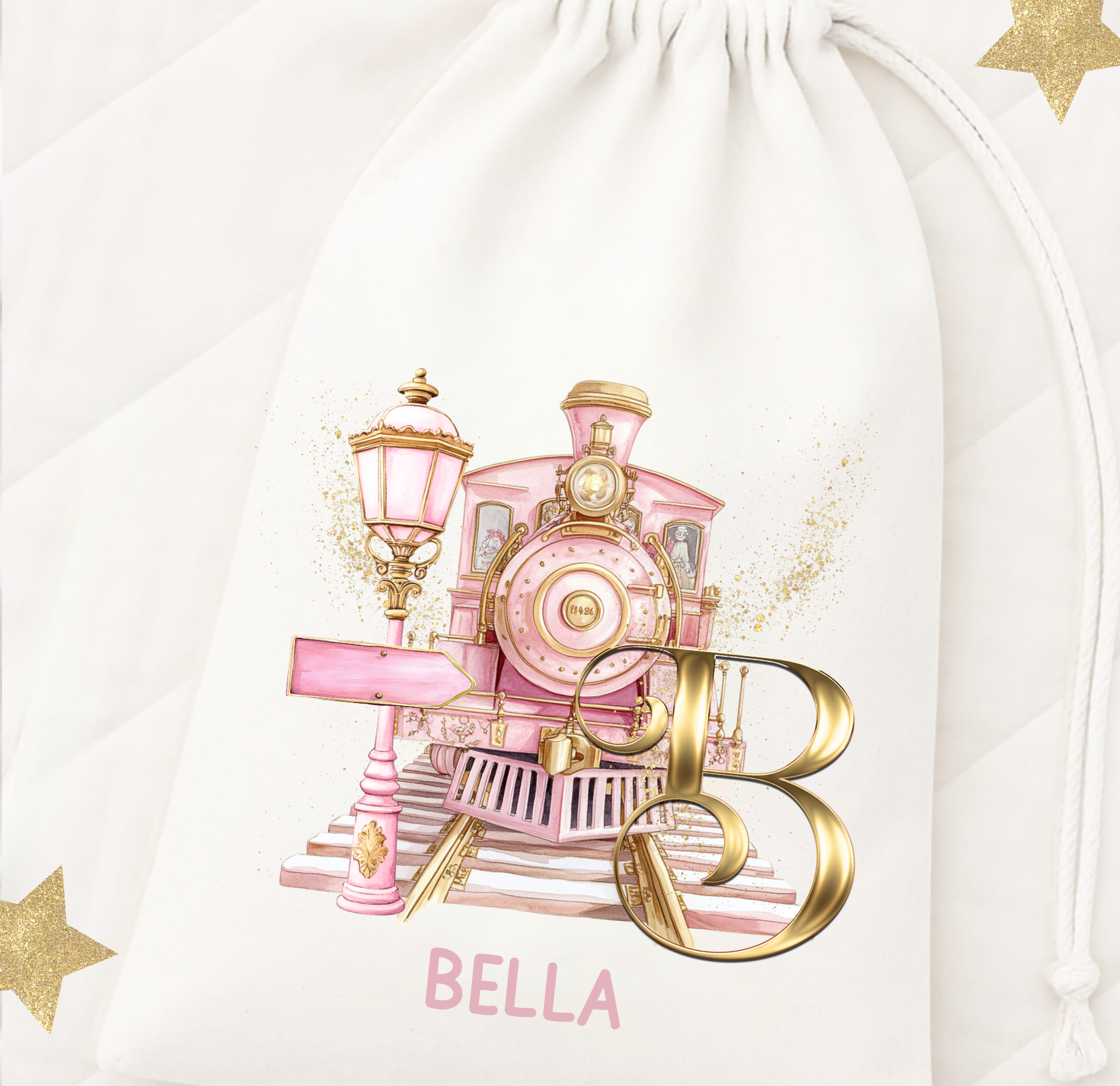 The cutest printed Polar Express Gift Sack. The perfect gift this Christmas, fill with goodies and there’s no need for a gift bag, they make the perfect keepsake! Personalised with a name. Available in Pink or Blue